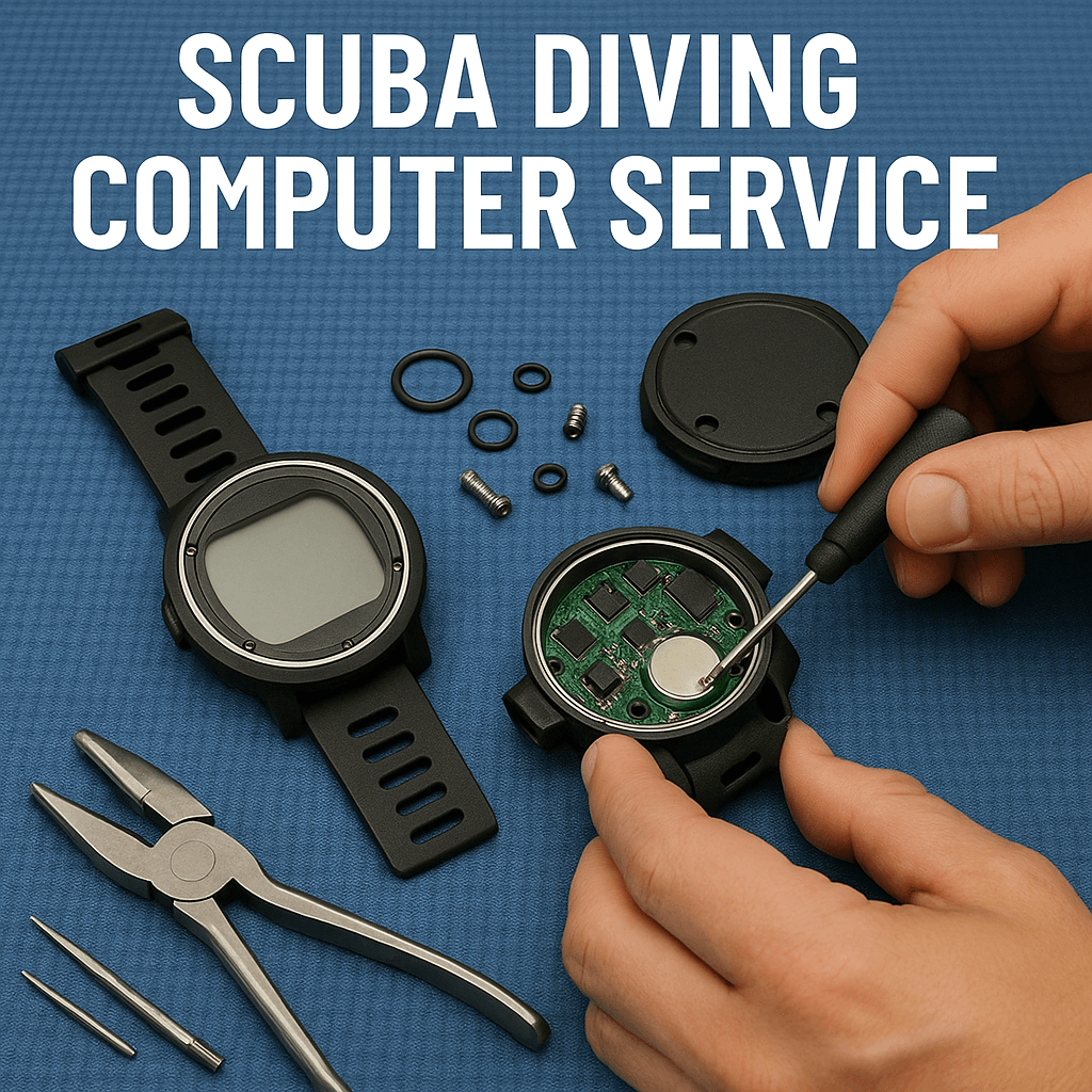 Professional battery replacement and pressure testing for dive computers and watches. The service includes a waterproof test.